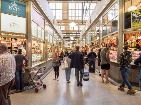 - Most hams follow a long supply chain - even if purchased from your local butcher's shop. Hams typically go from a large farm, to an abattoir, to distributor to shop to factory to shop. - that is most butchers will have someone else make the hams for them!