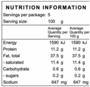 Chicken, Fresh Spinach, Sundried Tomato, Salt, Buffered Vinegar, White pepper, Ginger powder, Nutmeg, Onion Powder, Garlic Powder, Dried Oregano, Mace, pea protein powder, Rosemary Extract.