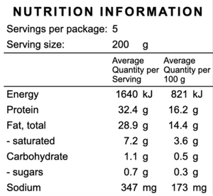 Gluten free, Nut free, Dairy free. Contains Garlic. It is made in a facility which handles these allergens, so trace amounts may be present.